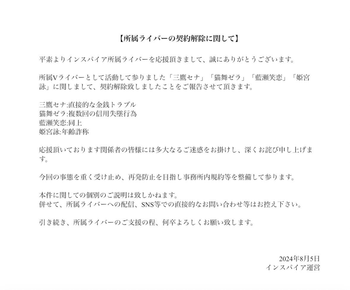 上3人の理由があれやからスパイスとしてついでに契約解除したんやろ