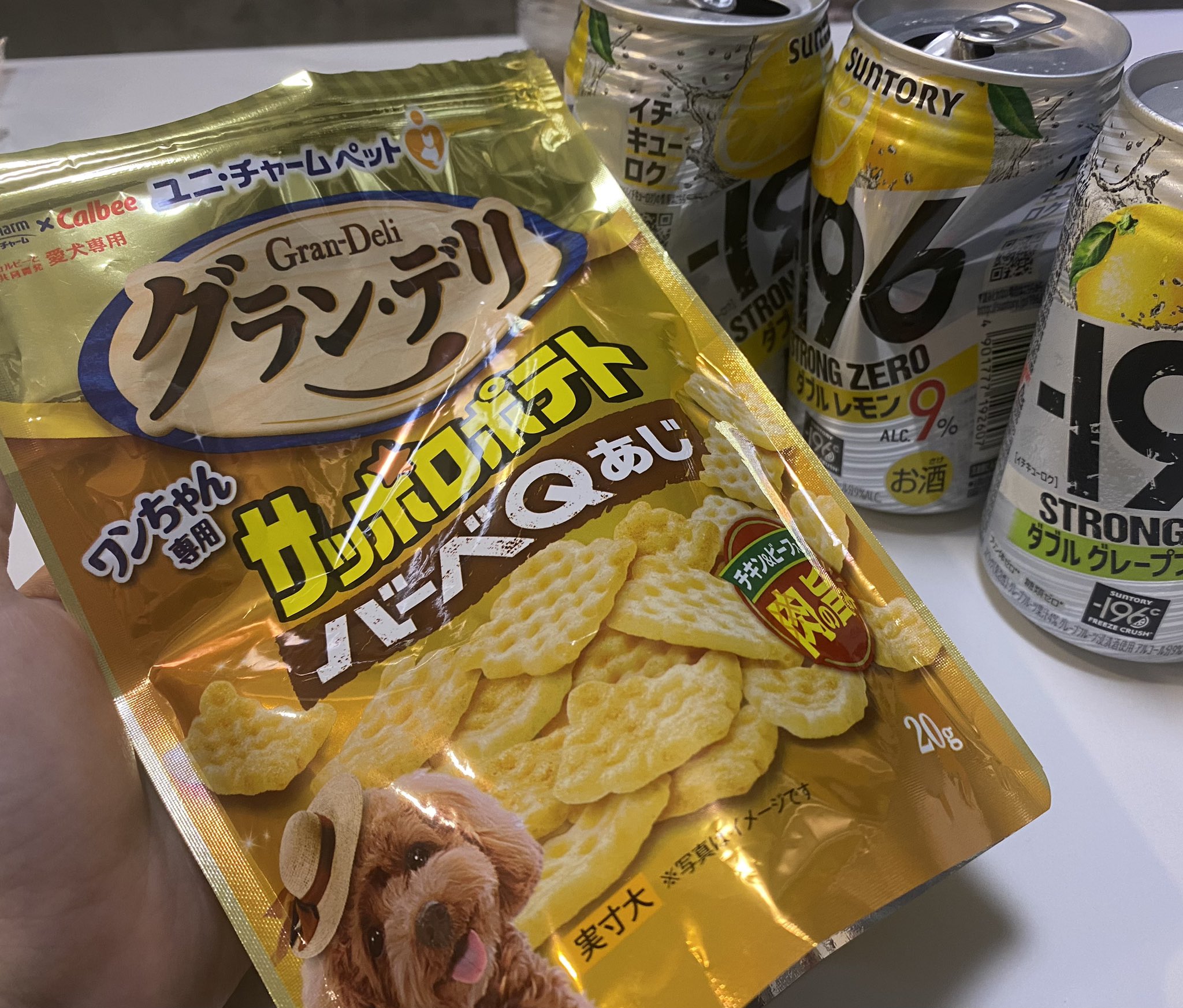 待って、酒3本開けて今更気づいたけど犬用のサッポロポテトあてにして飲んでた