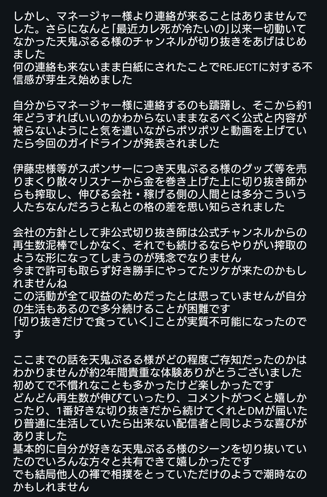 "グッズや切り抜き師への搾取"についてですが、自分はどちらも搾取したいなんて全く思っていなくて