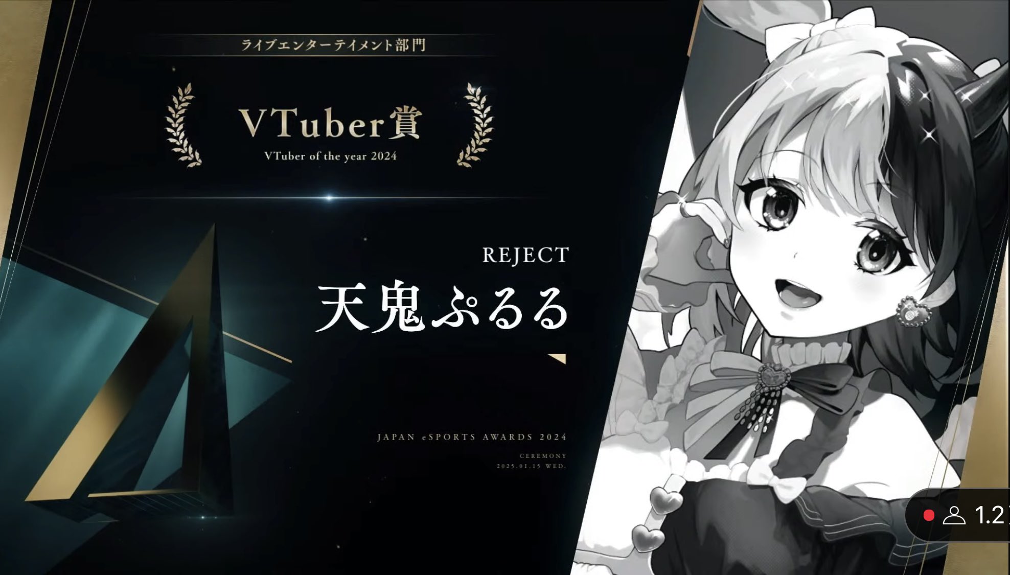 【朗報】話題のVtuber天鬼ぷるるさん、日本esportsアワードVtuber賞を受賞!!!→『流行語3位よくわからないけどありがとう!』