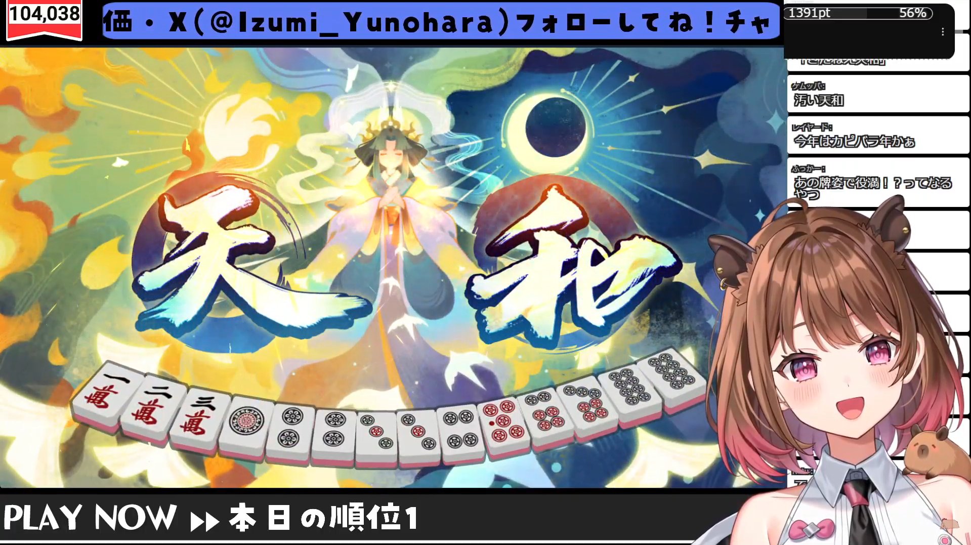 柚原いづみ、出現率 約1/330000の#役満『#天和』を段位戦配信で和了!!!https://t.co/aOycjEBtha pic.twitter.com/2hCpBGnm8E— 柚原いづみ♨🐾ななしいんく (@Izumi_Yunohara) January 16, 2025