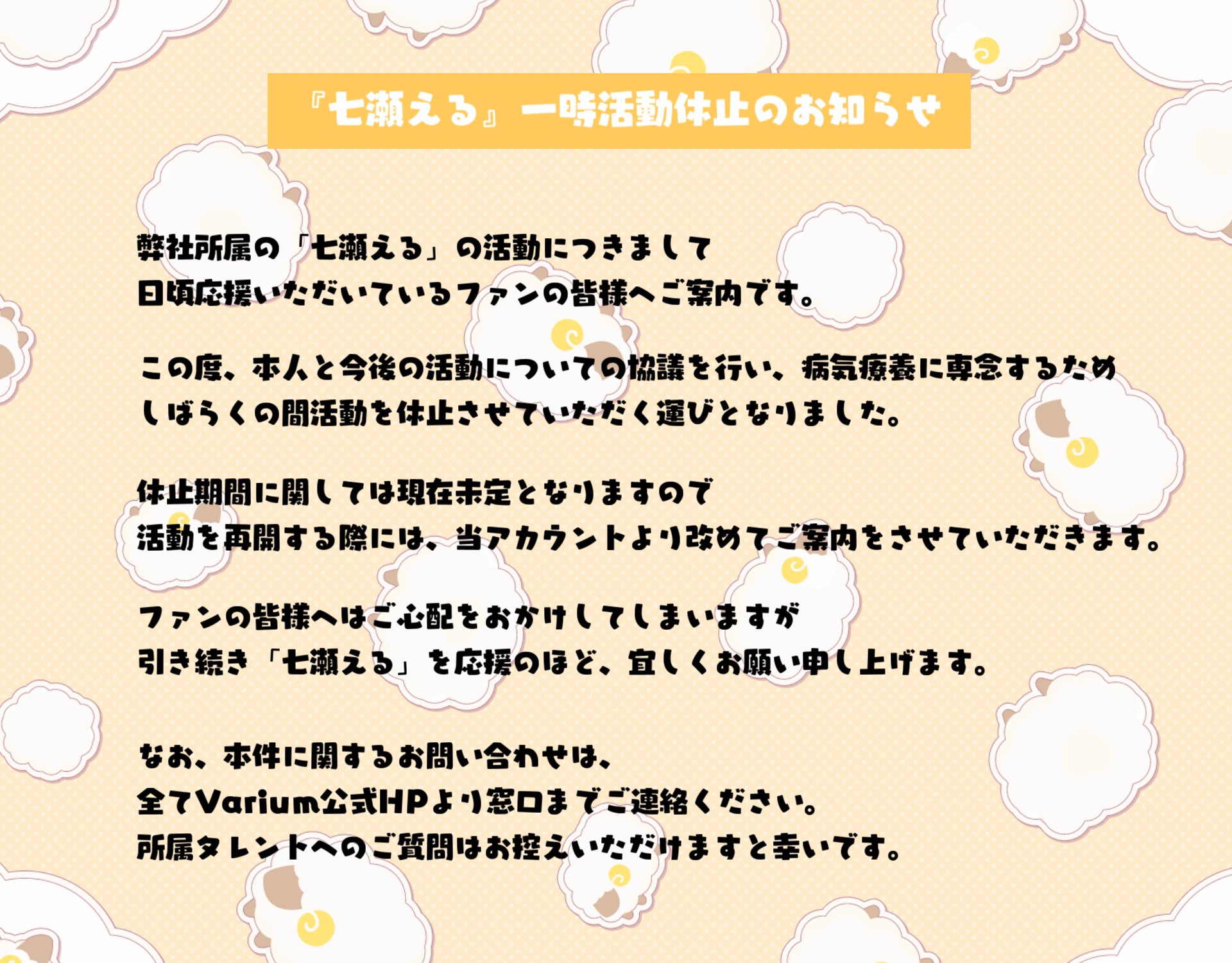 2024年10月29日からほぼ休止状態だった七瀬えるさん