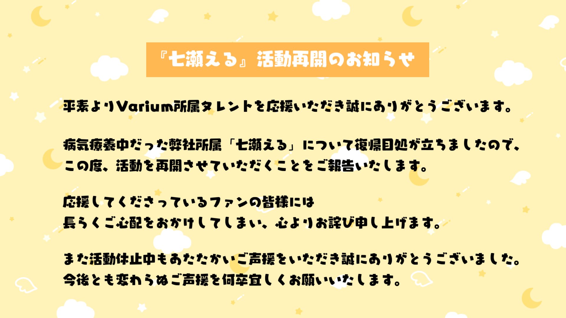Vtuber 七瀬 える Varium-ぶいありうむ-