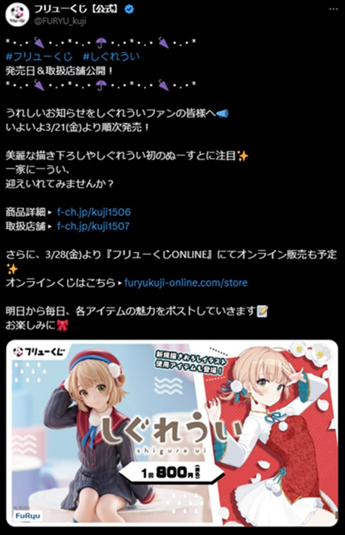 — フリューくじ【公式】 (@FURYU_kuji) March 10, 2025