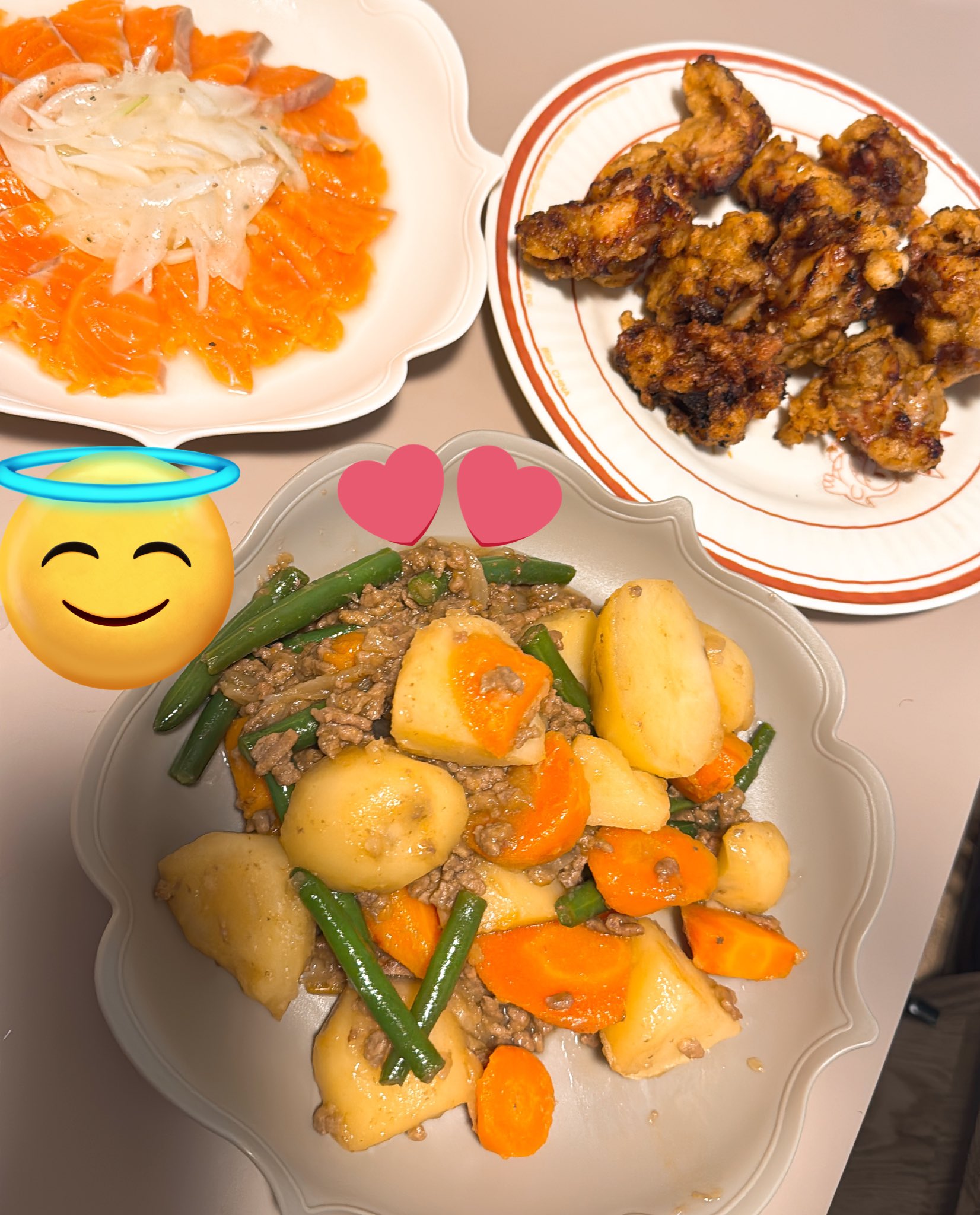 画像以外にもえのきのバター炒めとかウィンナー焼いたりとかナムルとかも作ってたんだけど全部食べてくれて最終的にポトフも作ったw