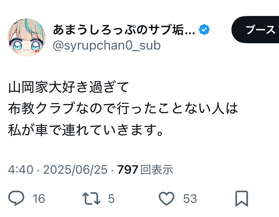 — あまうしろっぷのサブ垢🧁໒꒱· ゚ (@syrupchan0_sub) June 24, 2025