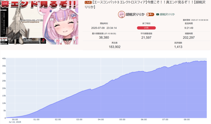 ちなみに40万超えた日の配信の同接は3.8万