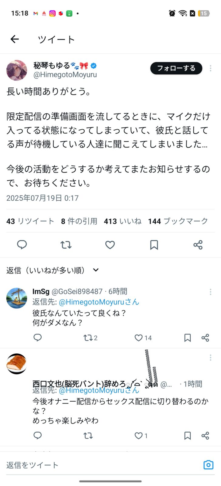 — 秘琴もゆる🐾🎀 (@HimegotoMoyuru) July 18, 2025