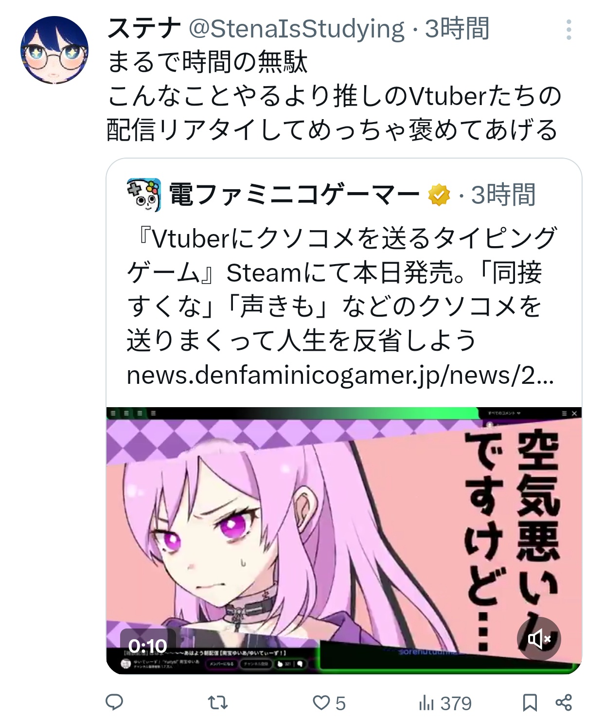vtuber嫌いだけどコメントで相手を傷つけることが楽しいとは思わんなぁ
