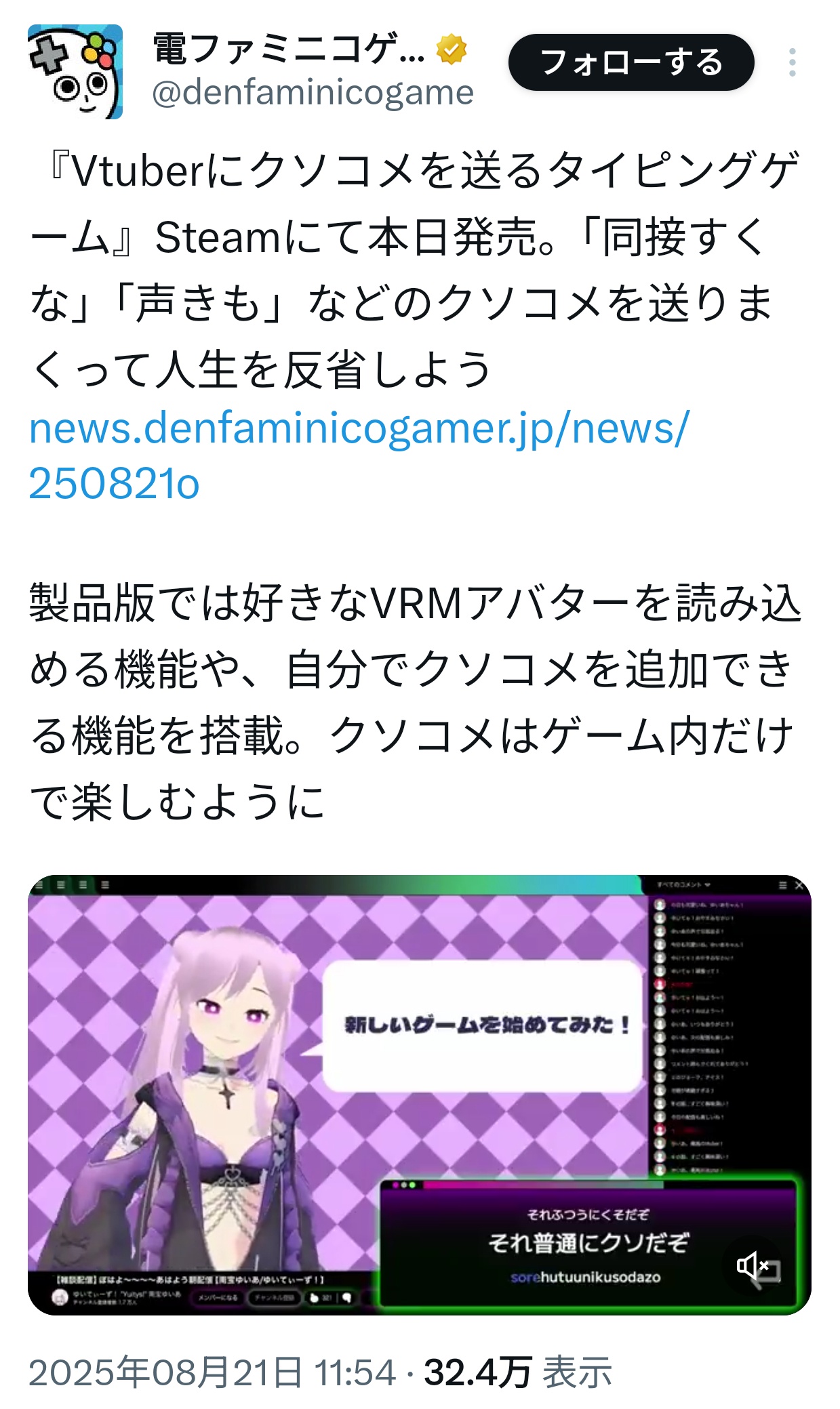 なおVRM切り替えで実在のVアバターにもクソコメを送れる仕様とのこと