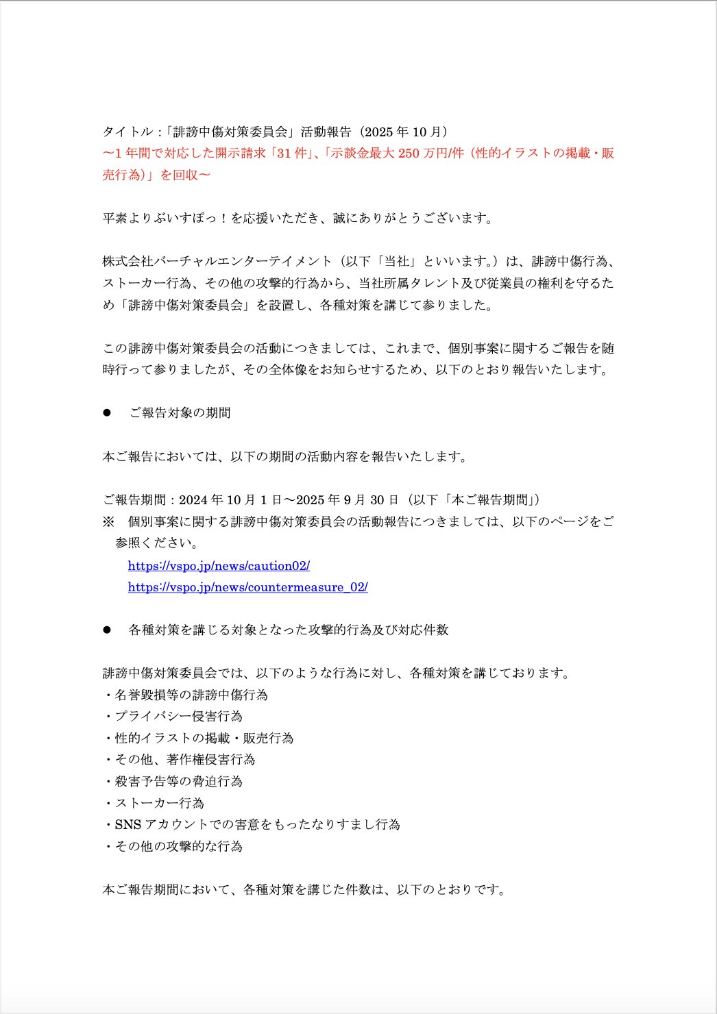 「誹謗中傷対策委員会」活動報告(2025年10月) pic.twitter.com/9ozCcCfDZG