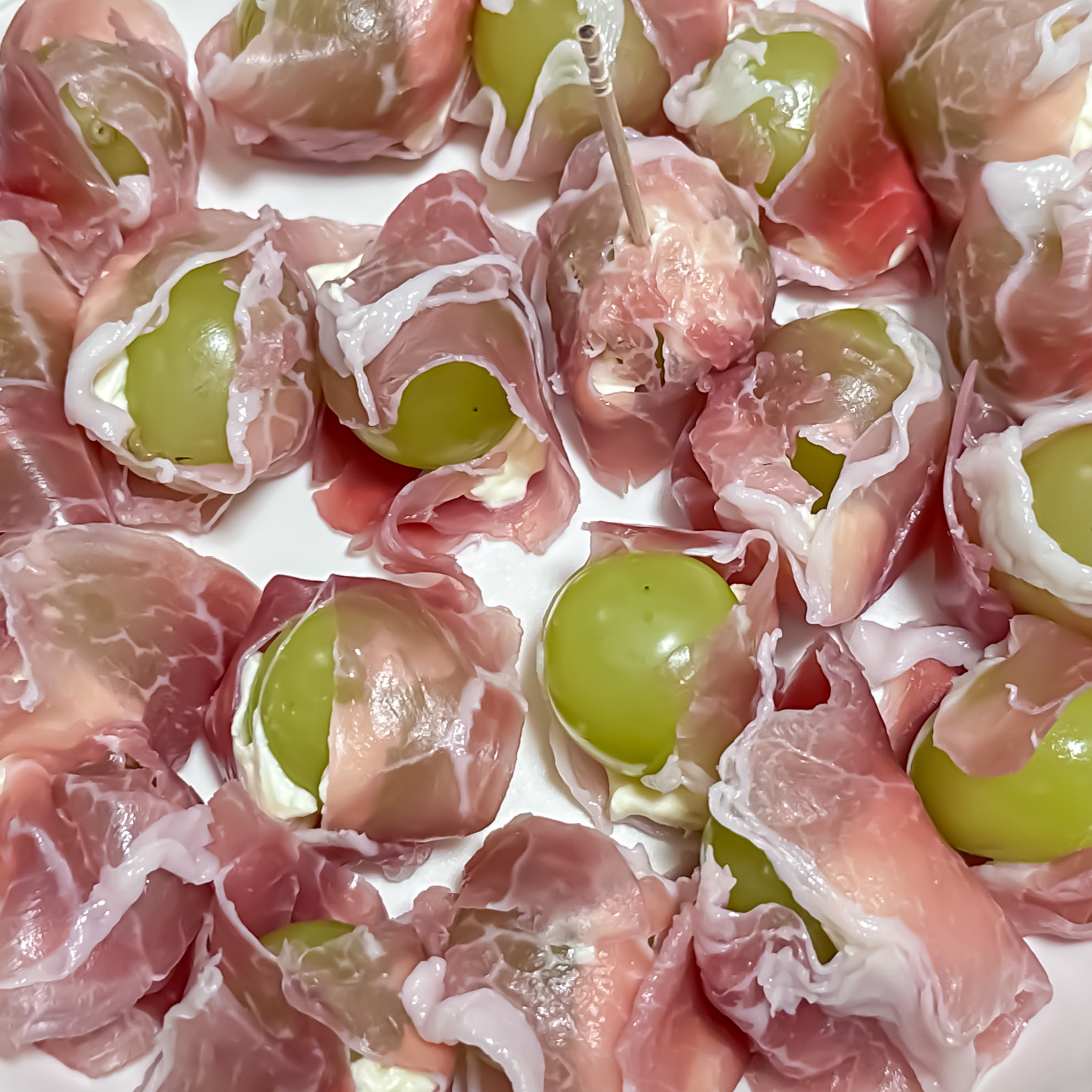 「今日シャインマスカットを生ハムで巻くってのをXで見たからやってみたのです!」