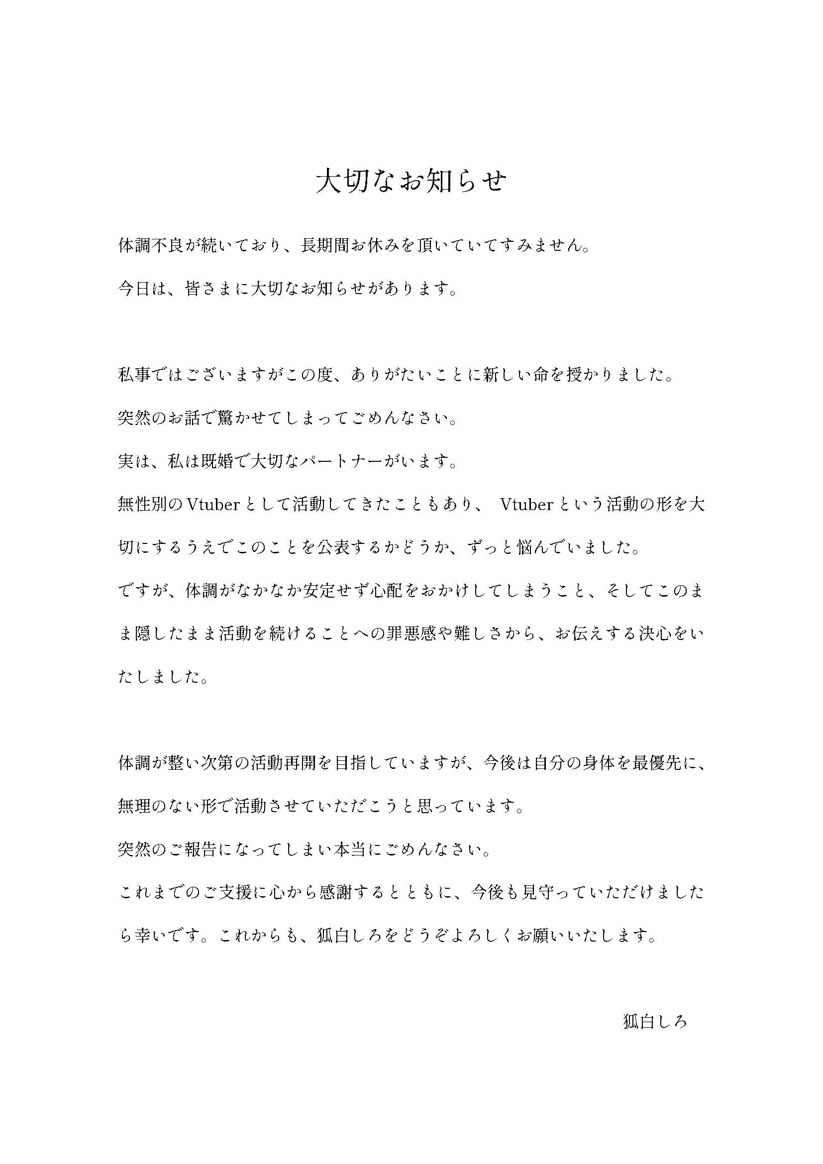 目を通していただけますと幸いです。 pic.twitter.com/7BuyOf0Kkd— 狐白しろ🦊❄️🔔@けだま (@shir0_kohaku) October 27, 2025