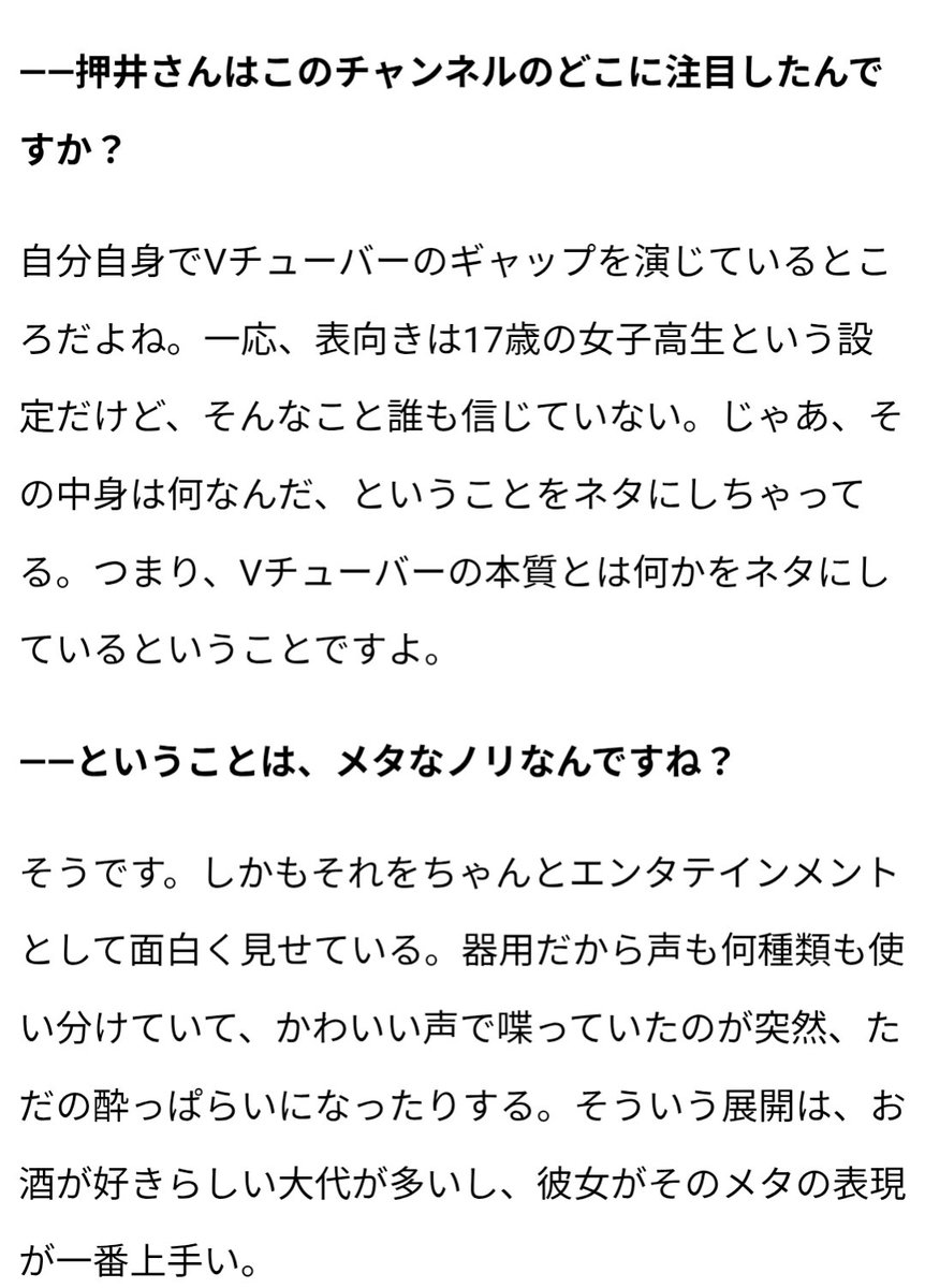 「Vチューバーの本質とは何かをネタにしているということですよ。」